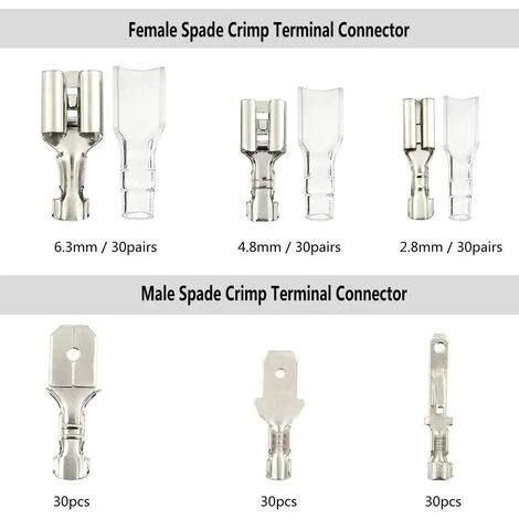 Lot de 30 x 2,8 mm connecteur mâle Spade crimp terminal Lot de 30 x 4,8 mm connecteur mâle Spade crimp terminal 30 pcs X 6.3 mm male Spade crimp terminal connecteur Lot de 30 x 2.8 mmm femelle Spade crimp terminal connecteur Lot de 30 x 4.8 mm femme Spade crimp terminal connecteur 30 pcs X 6.3 mm female Spade crimp terminal connecteur 90 pcs X manchon isolant