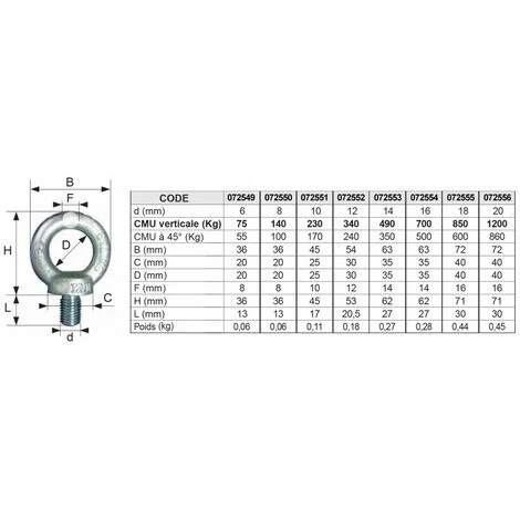 Coefficient d’utilisation 1/5. Filetage ISO.