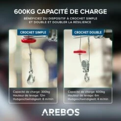 [Treuils Ă câble d’AREBOS] Si vous avez besoin d’un treuil Ă câble pour un usage privĂ© ou professionnel, AREBOS est l’endroit oĂą chercher : choisissez entre diffĂ©rents treuils Ă câble de 500 W et 100/200 kg, 1000 W et 200/400 kg, 1050 W et 300/600 kg, 1300 W et 400/800 kg ou mĂŞme 1300 W et 500/1000 kg.