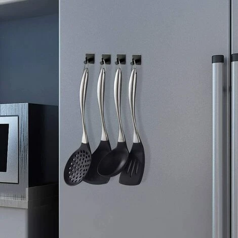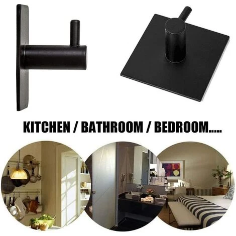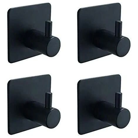 - 4 × crochet auto-adhésif ,4 pièces, crochet à serviette auto-adhésif, noir, crochet de peignoir, crochet mural, acier inoxydable, salle de bain et cuisine, porte-serviettes, porte-manteau, pas de perçage