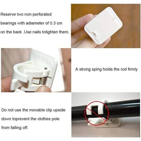 ăForte capacitĂ© de chargeăCes supports universels sans clous sont lĂ©gers et faciles Ă installer. Vous pouvez mĂȘme crĂ©er une solution de rideau double ou triple couche en ajoutant des supports supplĂ©mentaires.