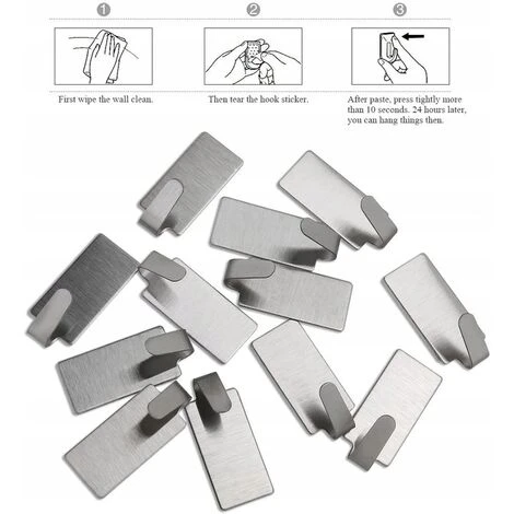 - C’est un emballage avec des crochets auto-adhĂ©sifs pratiques (12 pièces) en acier inoxydable durable.Facile Ă installer. Bon pour garder les choses bien rangĂ©es; ils sont utilisĂ©s pour accrocher d’innombrables articles mĂ©nagers.A de nombreuses utilisations. Convient pour une utilisation comme porte-serviettes, patère et de nombreux autres petits objets dans la maison.