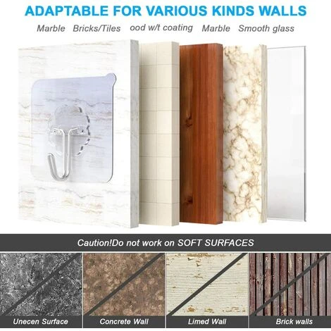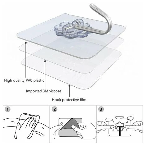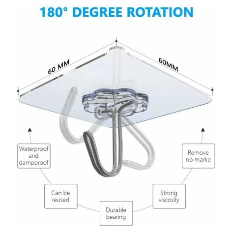 Aspect Ă la mode et transparent – la conception transparente unique le rend presque invisible, de sorte que le crochet peut ĂŞtre utilisĂ© comme dĂ©coration. Un pack de 32 crochets suffit pour une utilisation quotidienne.