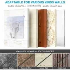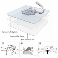 Facile Ă utiliser: dĂ©collez le film protecteur, nettoyez et sĂ©chez la surface lisse, appuyez fermement sur le crochet sur la surface et Ă©liminez les bulles d’air en le touchant.