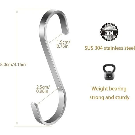 HAUTE QUALITÉ:Nos S crochets sont faits de métal de haut de gamme en acier inoxydable 304, qui est sans rouille, robuste et bien fait. Ces crochets S en INOX ont une surface lisse avec aucune arête pointue pour protéger votre main des égratignures. Le crochet S sera votre meilleur support et le premier choix pour vos achats.