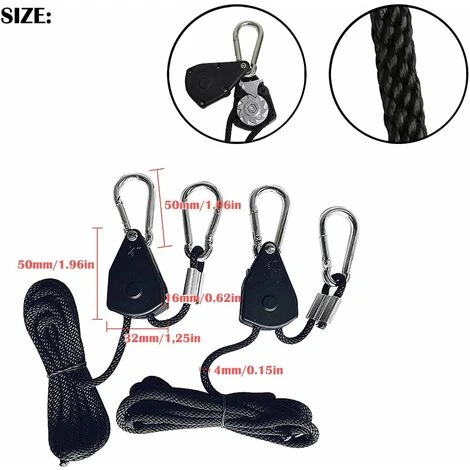 Large gamme d’applications: pour suspendre des lampes de culture Ă LED, des lampes d’aquarium, des ventilateurs, des systèmes de ventilation, des filtres, des rĂ©flecteurs, des pots de fleurs, des lampes de mineur, etc.