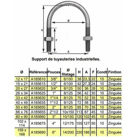 VIS EXPRESS Etrier Fond Rond 200X170X200 M12/55/55 Acier Zing Blanc | Conditionnement: 5 Pieces