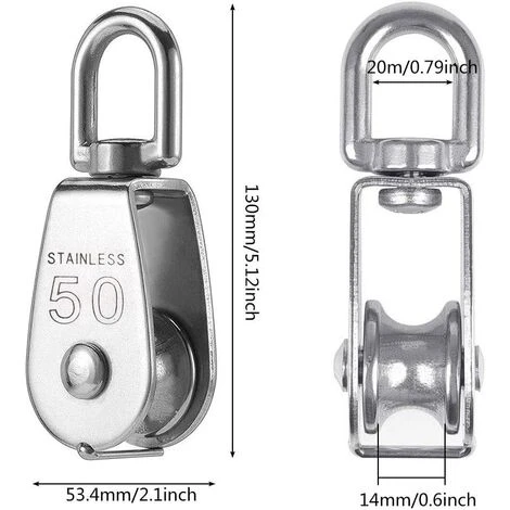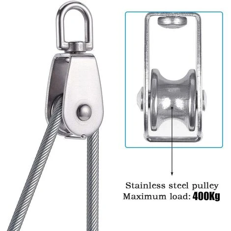 Les poulies en acier inoxydable M50 peuvent ĂȘtre utilisĂ©es Ă l’intĂ©rieur et Ă l’extĂ©rieur, les cordes d’extĂ©rieur, les Ă©quipements de fitness, les garages, le chargement de machines, les rideaux, les cordes Ă linge; ne les surchargez pas; peuvent Ă©galement ĂȘtre utilisĂ©s pour l’escalade ou le canotage.