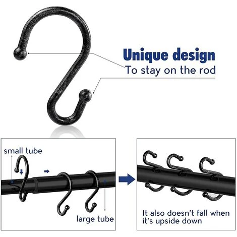 RÉSISTANT Ă€ LA ROUILLE : nos anneaux de rideau de douche sont fabriquĂ©s Ă partir d’excellents matĂ©riaux en alliage de zinc et ne rouilleront jamais. CROCHETS DURABLES ET RÉSISTANTS : le crochet utilise un fil mĂ©tallique de 5,0 mm, suffisamment solide pour supporter des rideaux de douche et d’autres objets lourds, et peut rĂ©sister un poids maximum de 50 lb.BONNE CONCEPTION: Notre forme en S de conception unique, qui rĂ©duit les frottements et les dĂ©chirures, glisse facilement et en douceur sur n’importe quel diamètre.La boule d’extrĂ©mitĂ© du crochet est conçue pour rester sur la tige et ne tombe pas. Utilisations : non seulement pour les rideaux de douche, mais aussi pour suspendre des serviettes, des casseroles et des poĂŞles, des tasses Ă cafĂ©, des vĂŞtements, des plantes dans la salle de bain, la cuisine, la chambre, le bureau et le jardin, etc. COULEUR UNIQUE : la conception de couleur unique ajoute une touche rĂ©tro Ă votre salle de bain La couleur et le traitement de surface des crochets du rideau de douche sont tous traitĂ©s manuellement, ce qui est plus beau et durable S’il vous plaĂ®t, ne pensez pas qu’il s’agit d’un fondu de couleur lorsque vous obtenez la vraie chose, il s’agit d’un design de couleur unique