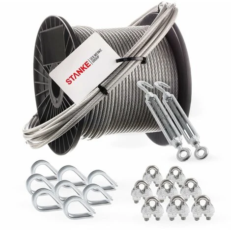 - Notre gamme comprend Ă©galement d’autres sets de câbles mĂ©talliques de diffĂ©rents diam?tres et constructions, ainsi que les accessoires appropriĂ©s tels que des serre-câbles, des cosses, des tendeurs, des crochets et bien d’autres produits.