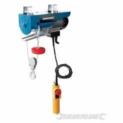 Palan Ă©lectrique soulevant 250 kg Ă 12 m ou 500 kg Ă 6 m (avec l’utilisation de la poulie de renvoi fournie). TĂ©lĂ©commande Ă bouton poussoir pour un levage lent, contrĂ´lĂ©, droit Ă une distance sĂ»re. Levier d’arrĂŞt automatique et arrĂŞt d’urgence.