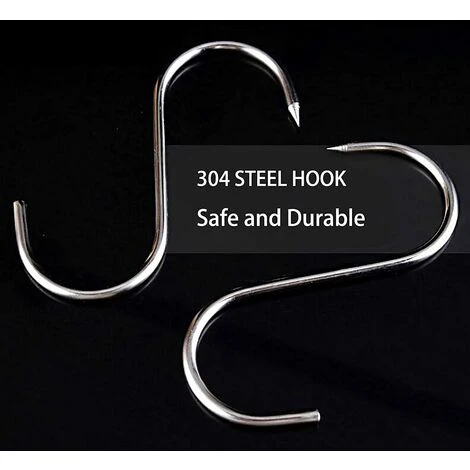 Utilisation polyvalente : Le crochet en S peut être utilisé de multiples façons, pour accrocher les marmites, casseroles et autres ustensiles de cuisine,Peut être utilisé comme crochet à viande, crochet de boucher, crochet de cuisine, crochet de barbecue.
