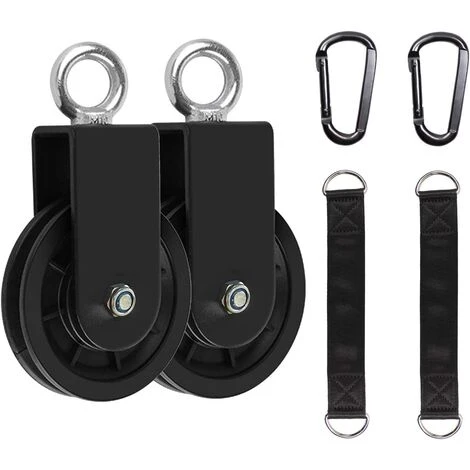 Contenu de l’emballage: 2x Poulies, 2x Sangles Suspendues, 2x Mousquetons. Portant jusqu’Ă 150 kg. Convient aux cordes d’un diamètre jusqu’Ă 7 mm / 0,28 in.