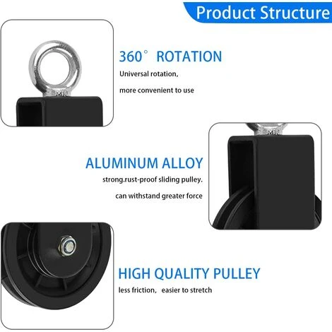 Conception ergonomique: La poulie musculation de 90 mm avec anneau pivotant à 360 degrés sur le dessus pour empêcher la corde / câble / fil de se nouer.
