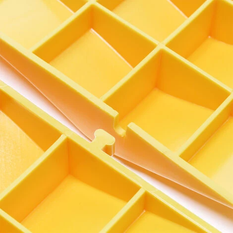 La cale- roue est en plastique robuste avec surface profilée. Les dimensions sont: 495 x 205 x 62 mm. Ces butoirs de roue peuvent être toujours utilisés de nouveau et sont naturellement résistants contre l’huile, l’essence et l’acidité. En outre, ils sont, après chaque usage, faciles à nettoyer.