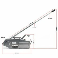 Le modĂšle classique du treuil se compose en gĂ©nĂ©ral dâun chĂąssis, dâune manivelle, dâun systĂšme de fixation et dâun tambour. Le treuil que nous vous proposons est de fonctionnement manuel, qui offre une capacitĂ© de charge allant jusquâĂ 3200 kg. La force de traction se transmet via une corde de 20 mĂštres de longueur et de 16 mm de diamĂštre. La corde, enroulĂ©e autour dâun tambour est Ă©quipĂ©e Ă lâextrĂ©mitĂ© dâun crochet de charge avec dispositif de sĂ©curitĂ©. Par ailleurs, le treuil Ă cĂąble est dotĂ© dâune goupille de cisaillement, qui le protĂšge des surcharges. Le bras de levier est muni dâune poignĂ©e caoutchoutĂ©e pour un usage de tout confort.